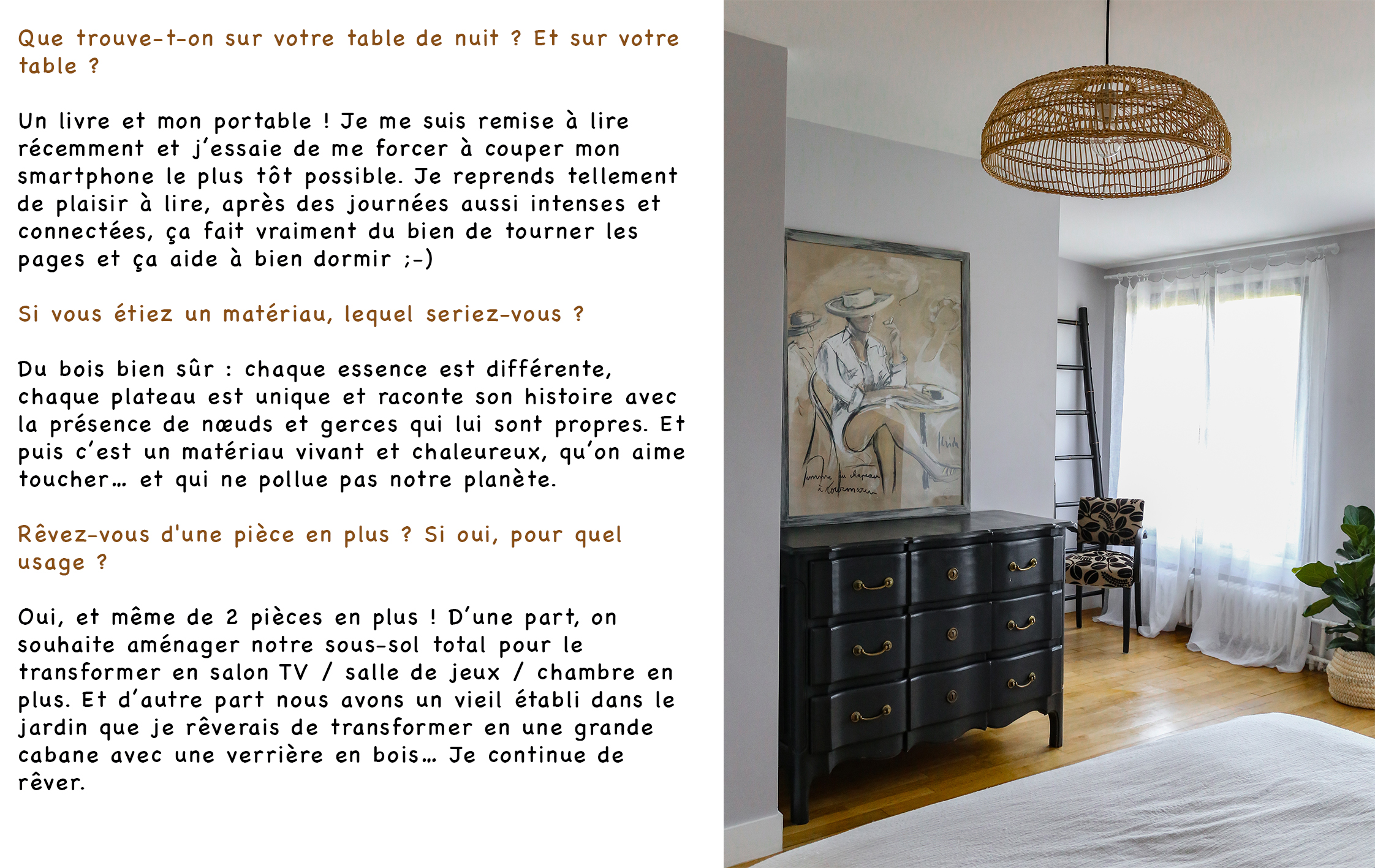 J’avais très envie de vous présenter l’intérieur poétique de Géraldine pour plusieurs raisons : j’adore son travail, son style, sa vision et sa volonté d’apporter une touche d’originalité à l’univers du design d’intérieurs et de la déco. For me Lab est pour moi un véritable coup de coeur ! L’idée de proposer des produits sur-mesure, dans l’air du temps et au prix juste me séduit beaucoup. D’autant plus que ce concept nous permet de fuir l’offre standardisée !
