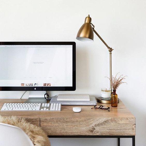 Une autre façon de bien éclairer votre bureau est de choisir une lampe à poser, des appliques murales ou même des suspensions adaptées à l’espace. Variez les luminaires pour obtenir une atmosphère studieuse et esthétique à la fois. Clin d’oeil pour les lampes en or. C’est la tendance du moment et cela rajoute une touche de raffinement à votre bureau aussi !