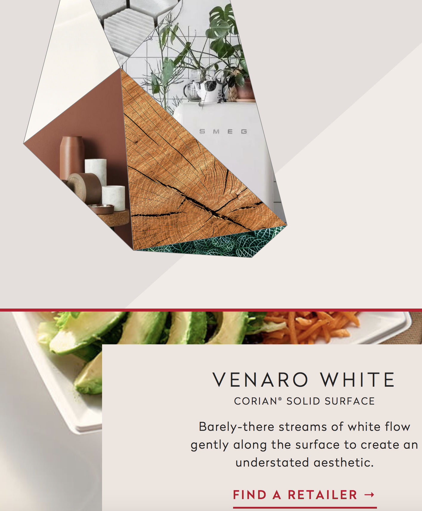 J’ai toujours aimé le rendu de ce matériau d’avenir. On le voit de plus en plus sur des projets résidentiels, mais aussi commerciaux. Avec plus de 100 teintes et motifs, et ses formes très variées, on le découvre sous forme de plan de travail, vasques, évier, voire même assise ! Alors, imaginez ma surprise quand j’ai découvert leur nouvel outil en ligne : le Corian® Design moodboard makerCorian® Design moodboard maker.
