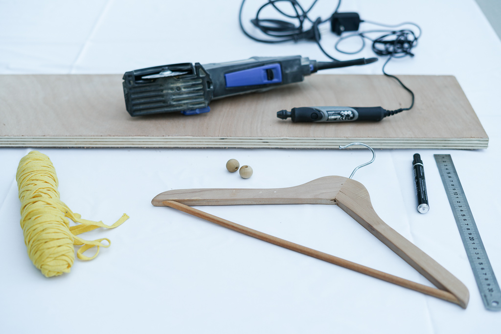 - Pour la baguette, il suffit de découper une vieille cintre en bois. A découper avec votre Dremel DSM20.