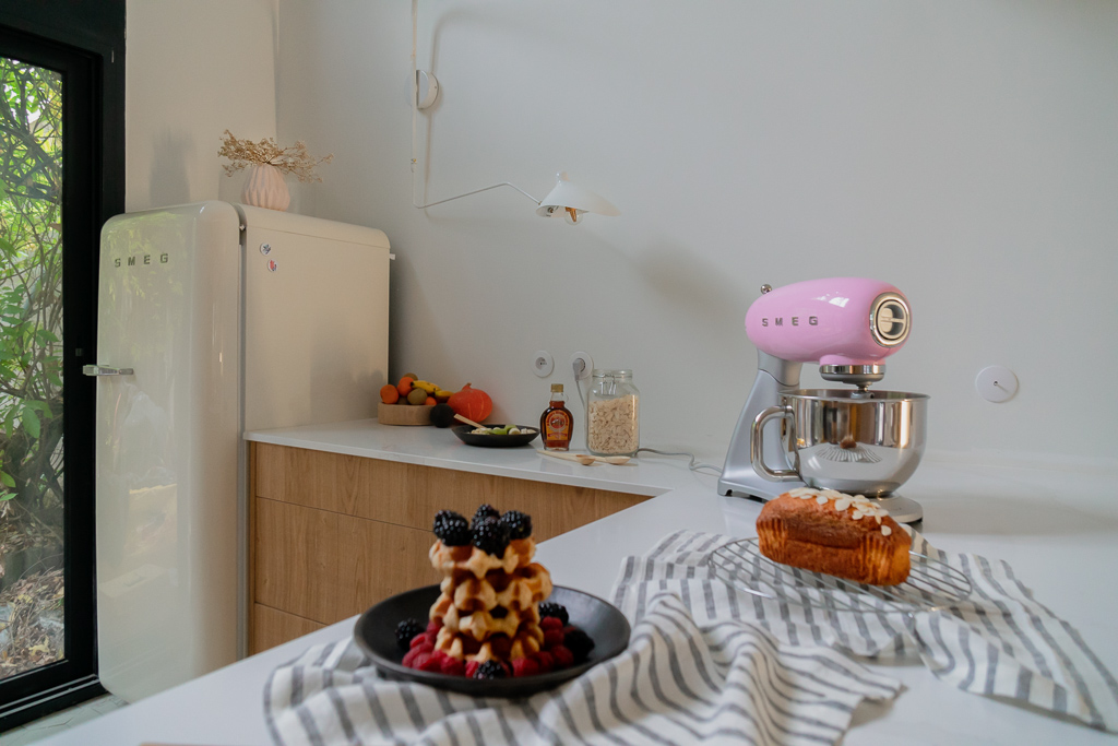 Humm, je ne sais pas ce que je préfère , ta nouvelle cuisine ( et cette ouverture sur l’extérieur que l’on devine ), tes gaufres ou le robot Smeg … sympa ce concours , je file voir sur ton compte Instagram