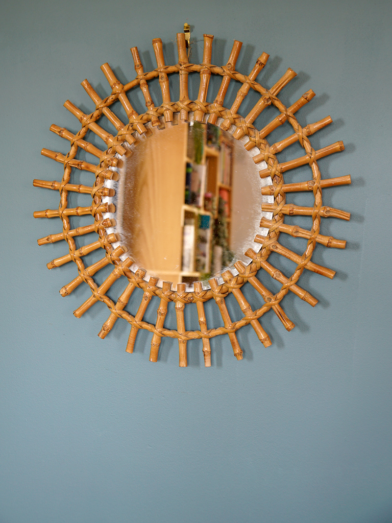 • Moi, j’ai imaginé une déco de chambre avec une petite table d’appoint et un miroir soleil. Pas une copie, mais vintage ! Une table d’appoint en cannage (très tendance) et le miroir en rotin pour un rendu vintage bohème ! Et j’ai été très fière d’avoir pu dénicher ces petites merveilles aux alentours de Montpellier et d’avoir pu faire des belles photos dans la jolie maison de Marie Aude du blog Mille et une vies ! Un grand merci ! Le lot s’élève à 100€.