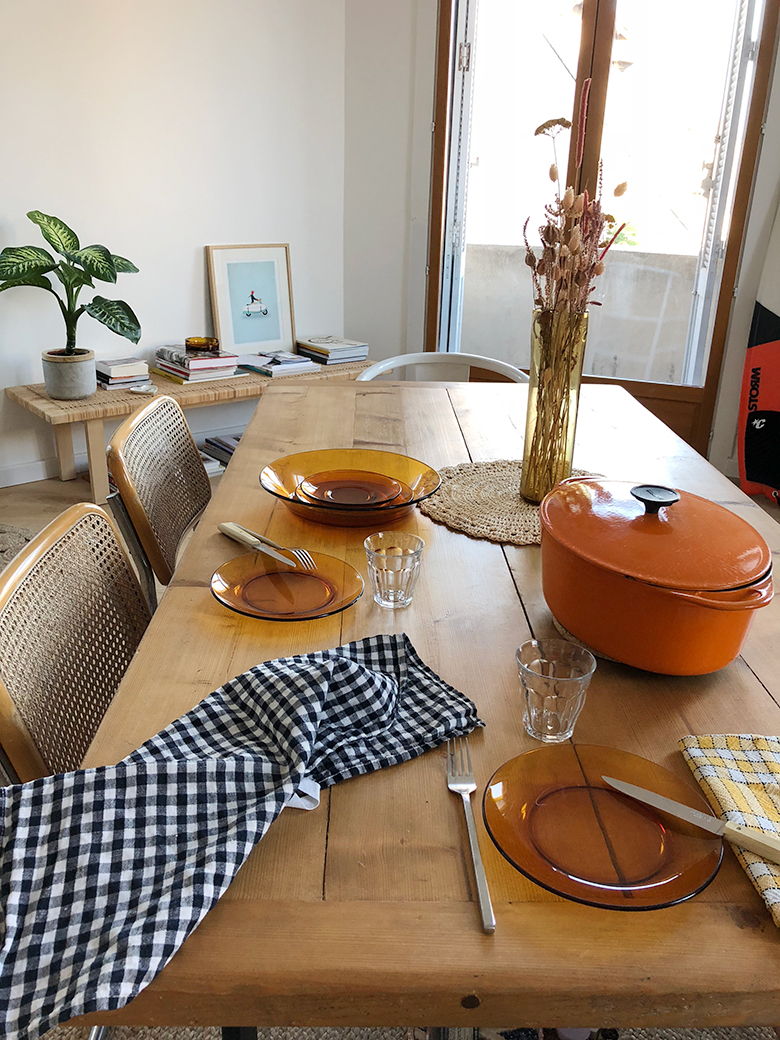 • Pendant ce temps là, du côté de Marseille, Aurélie a cherché un lot déco pour la cuisine. Rien qu’une cocotte en fonte Le Creuset + de la vaisselle ambrée avec des assiettes et un plat. Un lot à 80€. Si cela ne vous plaît pas, alors, je les prends bien pour chez moi !