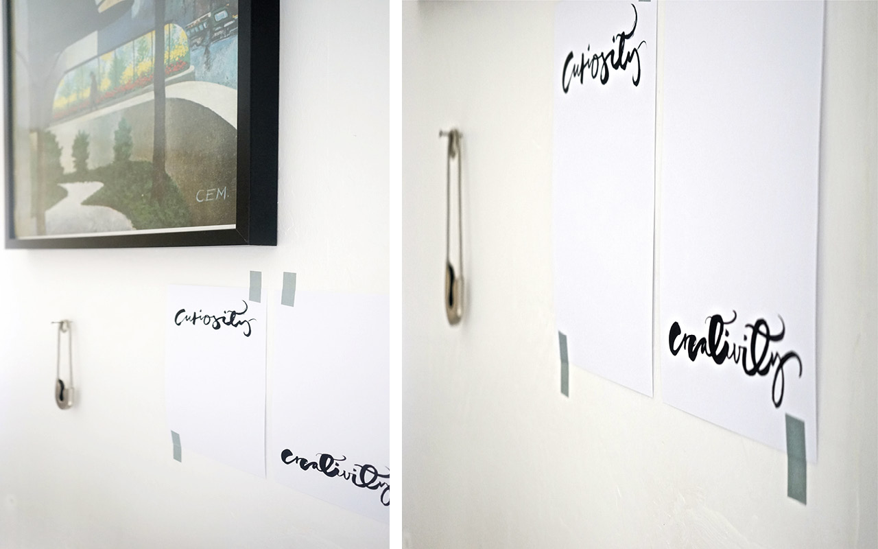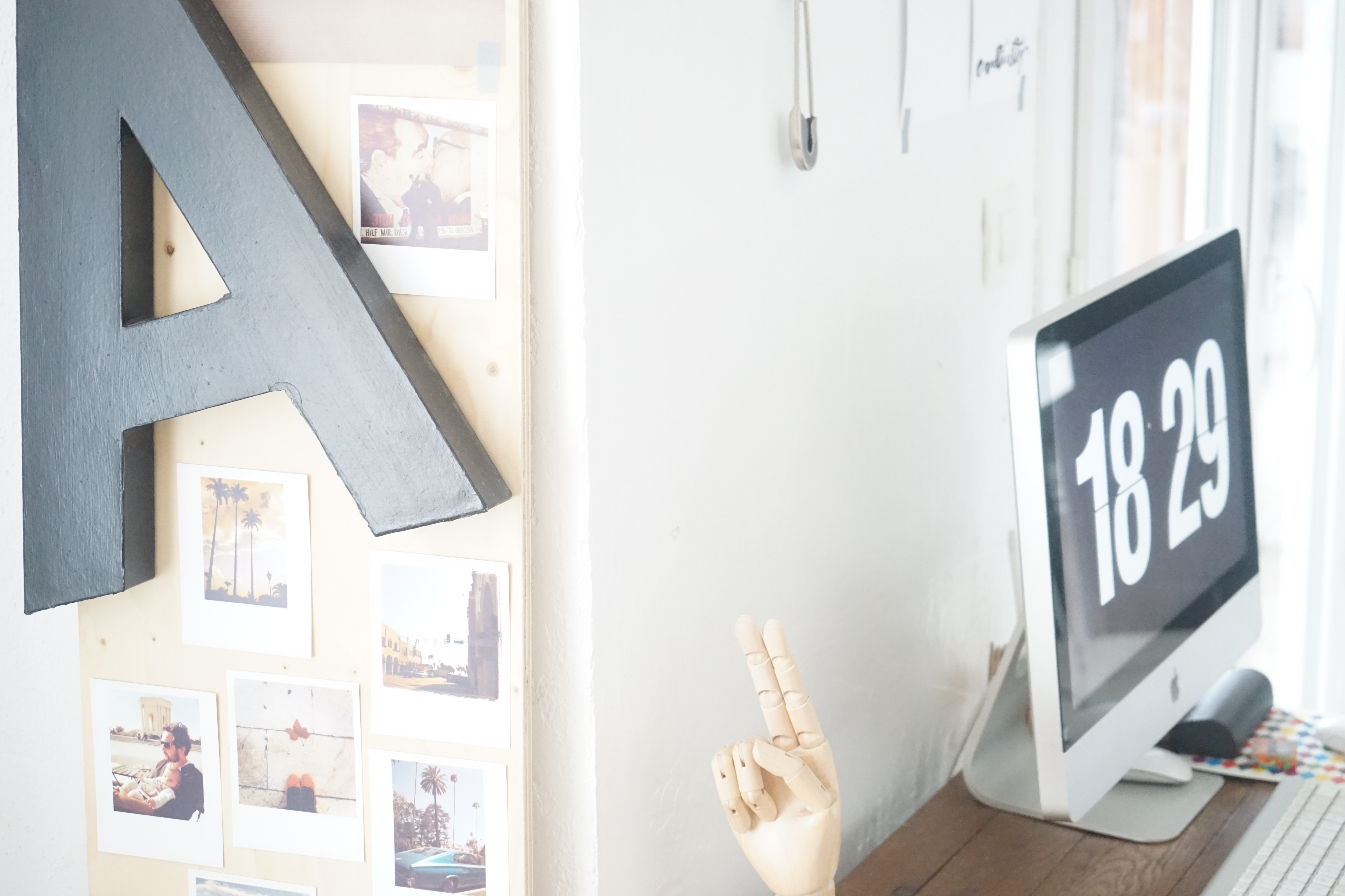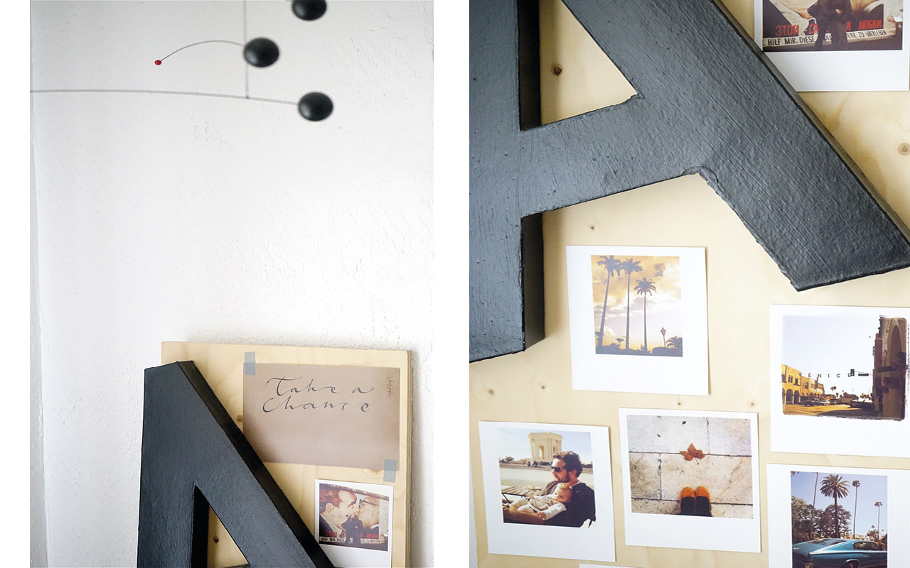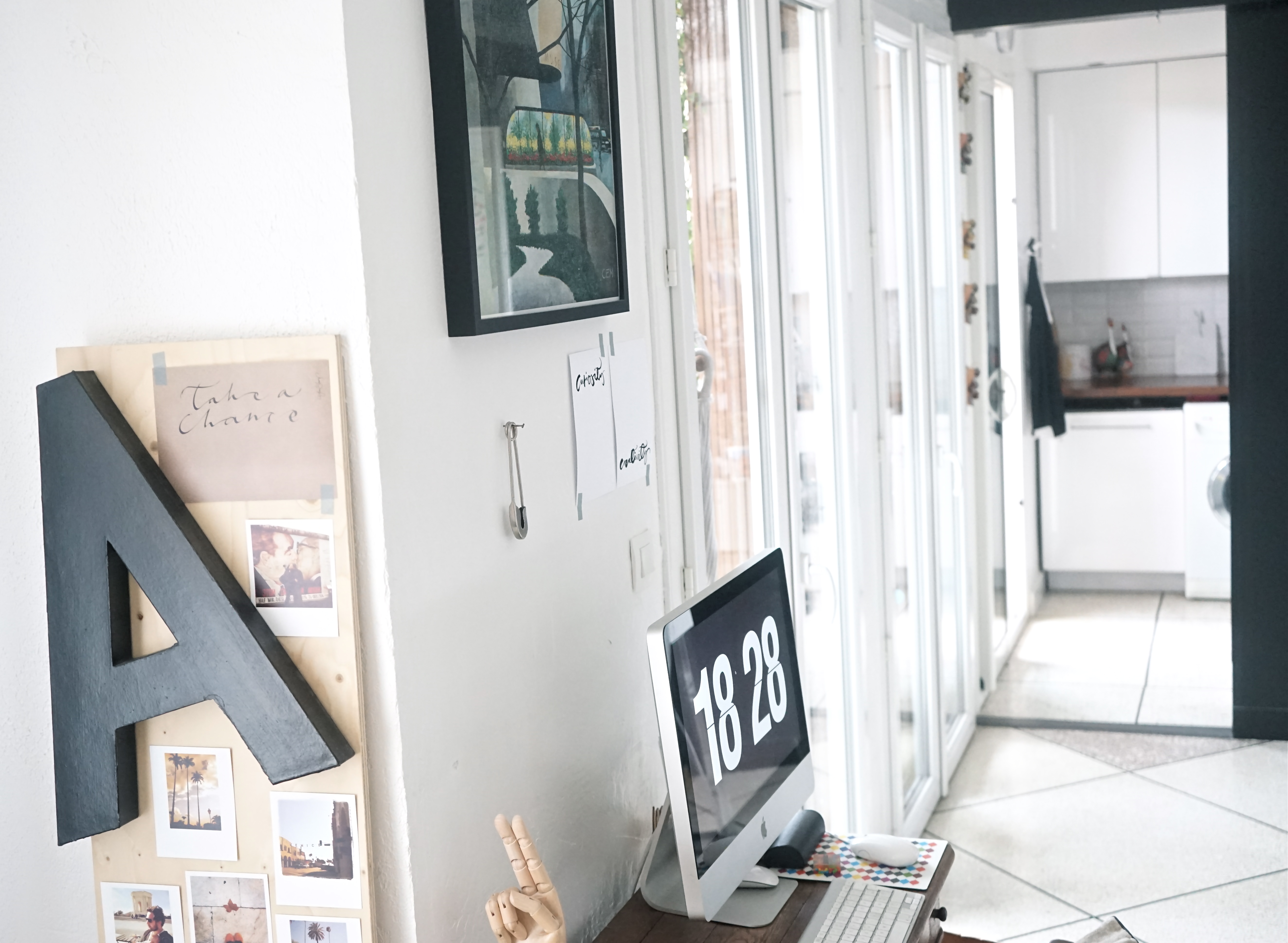 Tu as aménagé un coin vraiment sympa avec des belles astuces. J’aime particulièrement le panneau rempli de polaroids instagram et la calligraphie de Ylva Skarp! bravo!