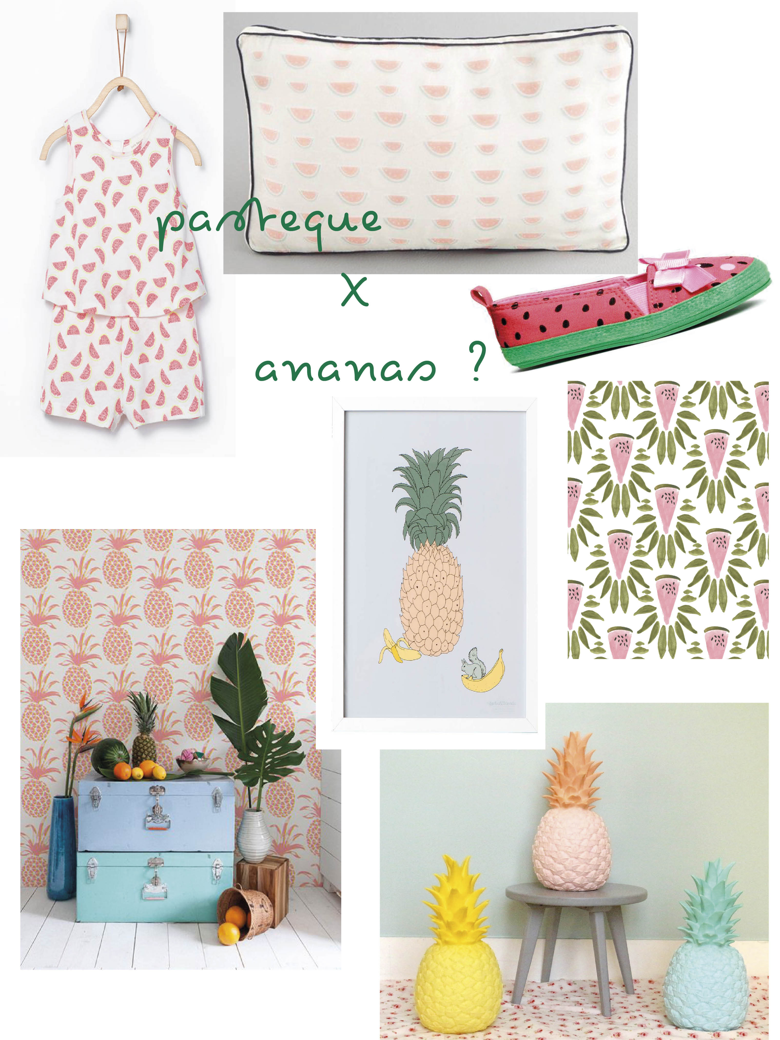 summer_kids_Inspirations_blog_decouvrir_design3Tipi Paduca – La Redoute ; sandales Zara kids; sac Filet- Happy Zoe Kids ; coussin bohème rouge du rhim – Smallable; ambiance via French fancysummer_kids_Inspirations_blog_decouvrir_design4Ambiance via Le dans la; affiches papa et mama cool – Emoi Emoi ; Tennis imprimé tropical – Zara kids ; Charlie Le toucan Scalaë summer_kids_Inspirations_blog_decouvrir_design2Combinaison à motifs pastéque Zara kids; Housse de coussin Melio AmPm; chaussures en tissu H&M kids; poster ananas Garbo&friends – Smallable ; Afiche pasteque Bouffants & broken hearts; veilleuses ananas – Sweetcabane; ambiance via Design Spongesummer_kids_Inspirations_blog_decouvrir_designMiroir pomme rotin – Maison empereur ; Transat enfant petites fleurs – Happy Zoe Kids ; combinaison imprimé à fleurs Zara Kids ; ambiance via Pinterest