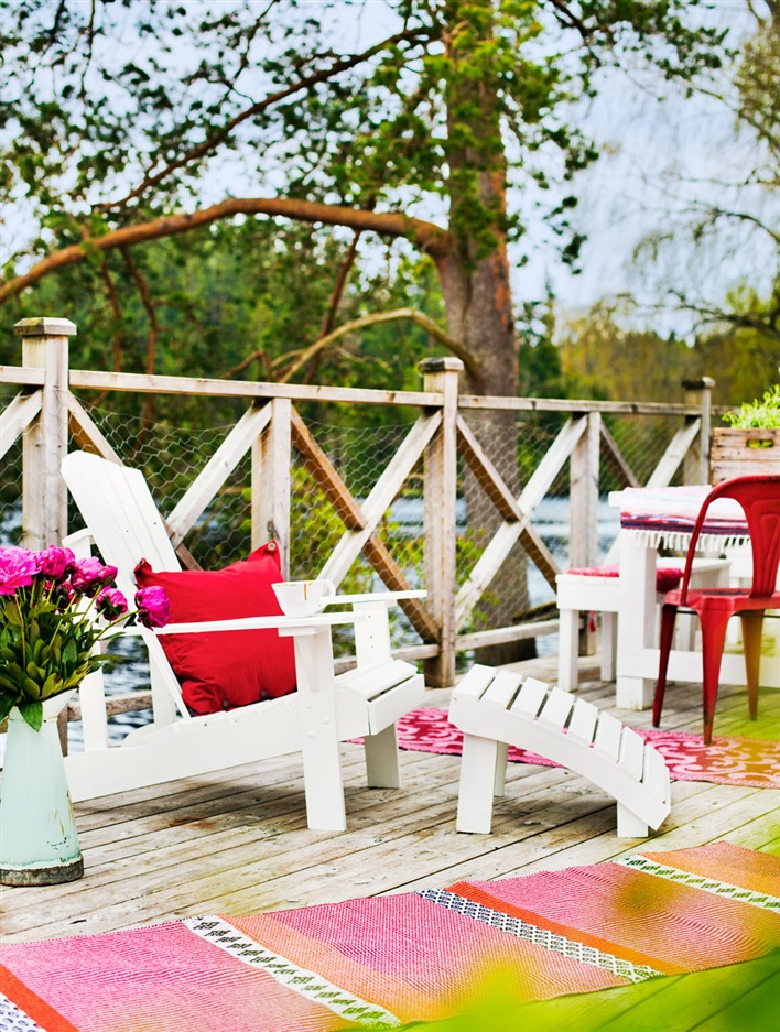 Voici mon coup de coeur du jour. Je pense que cette maison scandinave ne peut que vous plaire ! Une maison lumineuse, fraîche et pleine de jolis détails comme le canapé en palettes, les chapeaux décoratifs, la guirlande lumineuse et le rouge bien marqué dans la déco. Moi-même, je ne suis pas une grande fan de cette couleur ; mais je crois que  son pouvoir stimulant mixé au blanc prédominant et aux touches de bleu ont réussi à installer naturellement une atmosphère plaisante et conviviale et une ambiance très festive. Qu’en pensez vous?