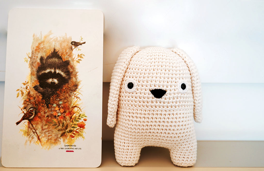 Finalement, j’ai compris que le côté chic de la maison de Laetitia venait de ses années parisiennes et de son parcours professionnel dans l’univers de la mode. Petit Bateau, American vintage entre autres, elle a quand même fait le tour des marques que nous font soupirer ! Mais derrière la créatrice de charmants objets en tricot se cache également une photographe graphiste. (Et aussi une charmante pâtissière. J’ai bien eu la chance de déguster ses cookies maison “crop” bons !) Mais intéressons nous à son parcours créatif. Car c’est le regard curieux qu’elle porte vers la vie qu’a donné vie à son sweet home.