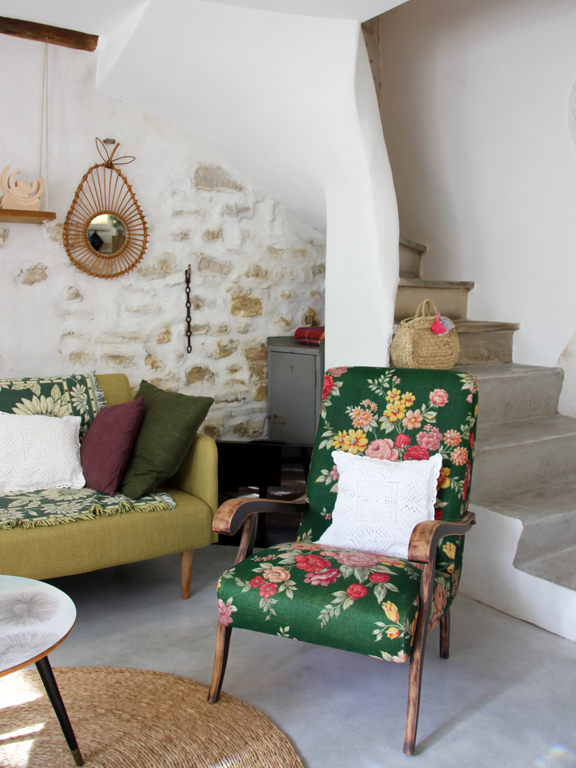 Il y a quelques semaines, j’ai eu la chance de séjourner dans cet intérieur chaleureux et coloré entièrement refait et décoré par cette créative douée ! Et comme les belles choses sont toujours à partager, je n’ai pas pu m’empêcher de prendre des photos pour vous montrer tout ça. On reconnaît forcément la touche de Nathalie. Sa passion pour les sols en béton ciré, pour le mobilier vintage, pour les matières naturelles y est ! Ainsi que la note de couleur, la récup, les DIY et le mix de style nordique et décoration bohème, un brin méditerranéen. Quand même !