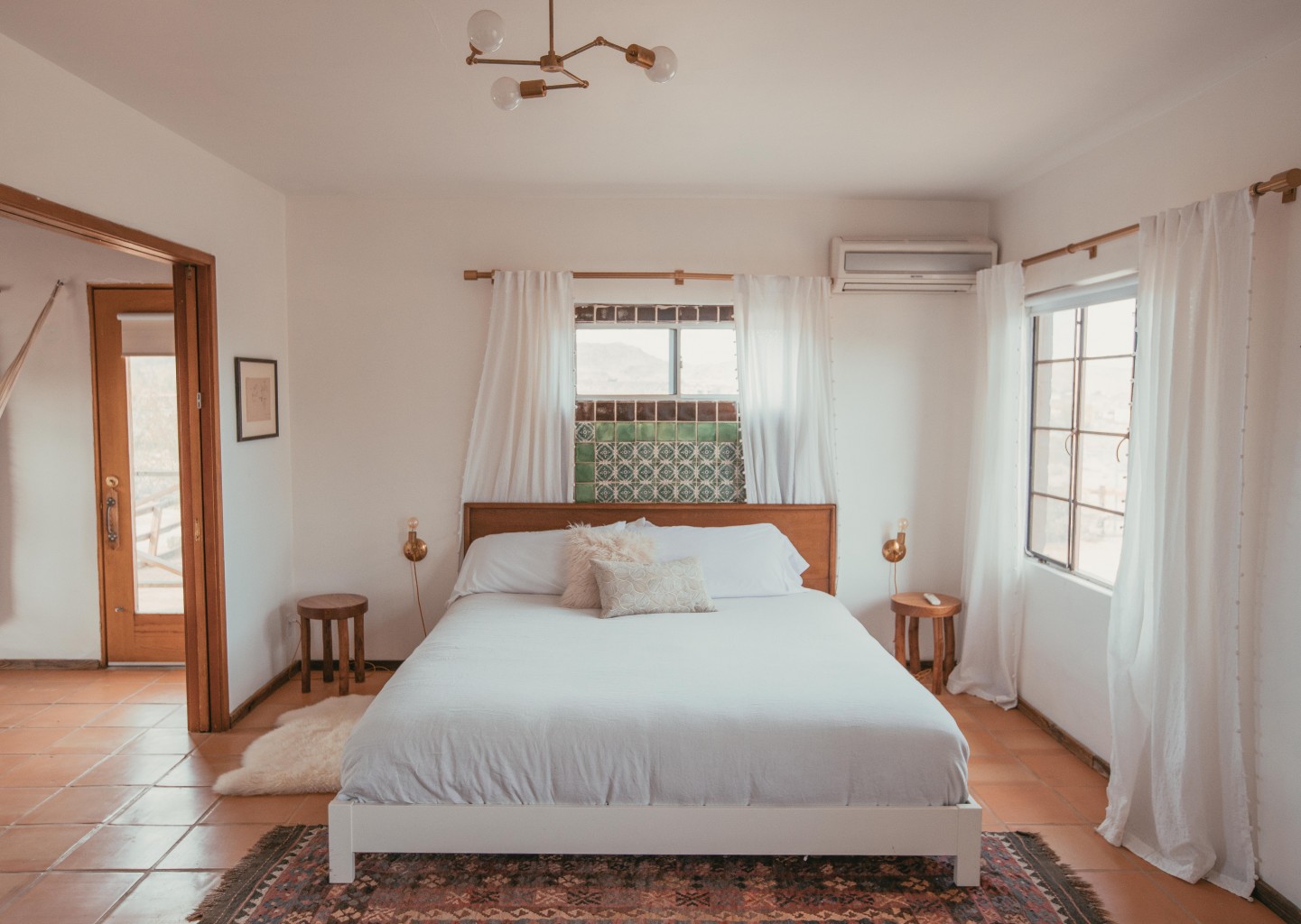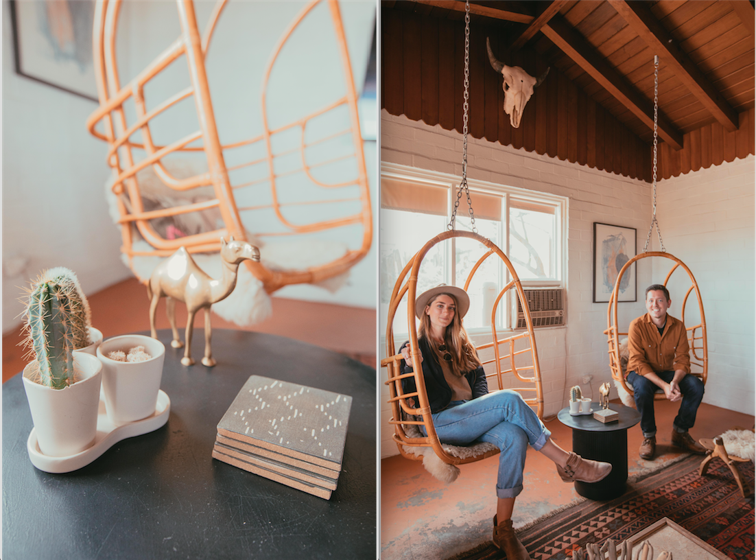 J’ai eu un coup de coeur pour ces deux lieux de vie chargés d’histoire et des vibrations du désert. La bonne nouvelle est que ces maisons sont à louer via AirBnb. Une découverte faite lors de mes recherches pour mon dernier article autour des hébergements déco. Une bonne idée pour vos prochains voyages ! On commence par The Joshua Tree House, la propriété de Sara et Rich Combes. La maison a été rénovée par ce couple de web designers de San Francisco. Ils ont puisé leur inspiration dans l’amour par l’environnement naturel et authentique qui les entourait. Tout est souligné dans les détails de la décoration.