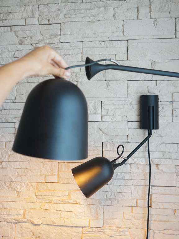 La collection Magnetic, dessinée par Olivier Desbordes pour LightOnline, affiche des lignes simples, graphiques et élégantes. Moi, ce qui m’a attiré, c’était principalement le côté orientable de cette pièce et le rendu esthétique inspiré des classiques lampes potence. Comme dans les modèles très classiques, voir la lampe potence de Jean Prouvé celle de Paolo Rizzatto, les appliques Magnetic ont aussi des bras pivotants. Ils sont tubulaires et possèdent un diffuseur orientable de forme galbée maintenu par aimantation. Cela nous permet de directioner la source de lumière comme on a envie ! L’applique est en métal dans des finitions de couleur blanche ou noir mat. J’ai opté pour le coloris noir pour avoir  justement cet effet industriel brut dont je parle. Je trouve que cela donne une touche de sobriété et raffinement ! Mais surtout, cela va bien avec tous les autres styles de déco et mobilier !