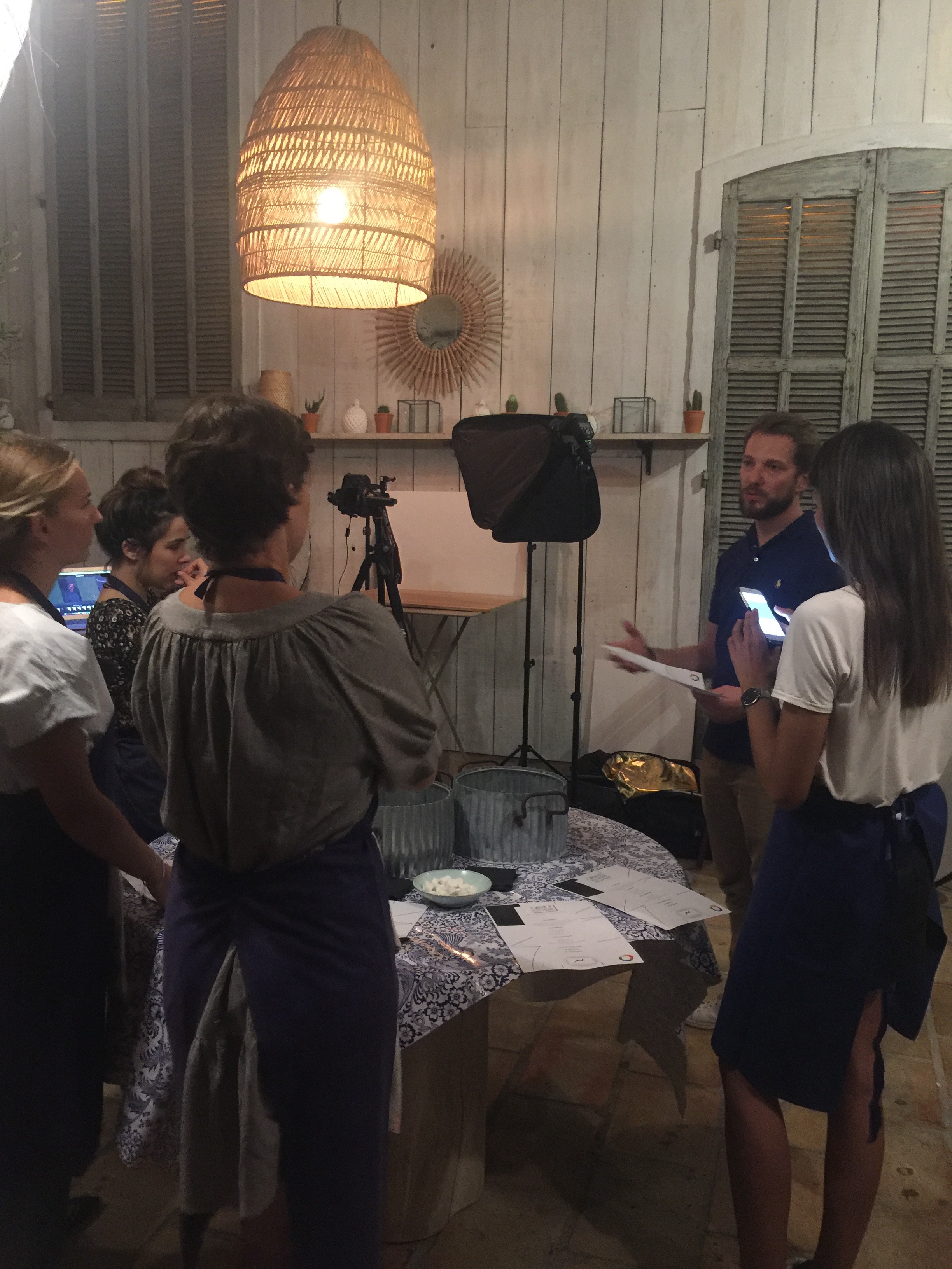 Ensuite, nous avons eu droit à un atelier de photographie animé par Mathieu Blayac, un photographe qui j’apprécie beaucoup et qui me donne toujours des bons conseils, un atelier ouverture d’huîtres par Les Temps de Gaston, ces filles adorables qui ont été capables de m’apprendre à faire quelque chose d’utile en cuisine. Et ce n’est pas fini ! Je garde le plus savoureux pour la fin, nous avons aussi fait un atelier dessert avec Geoffrey, le chef pâtissier et un atelier tapas avec Pierre Augé.