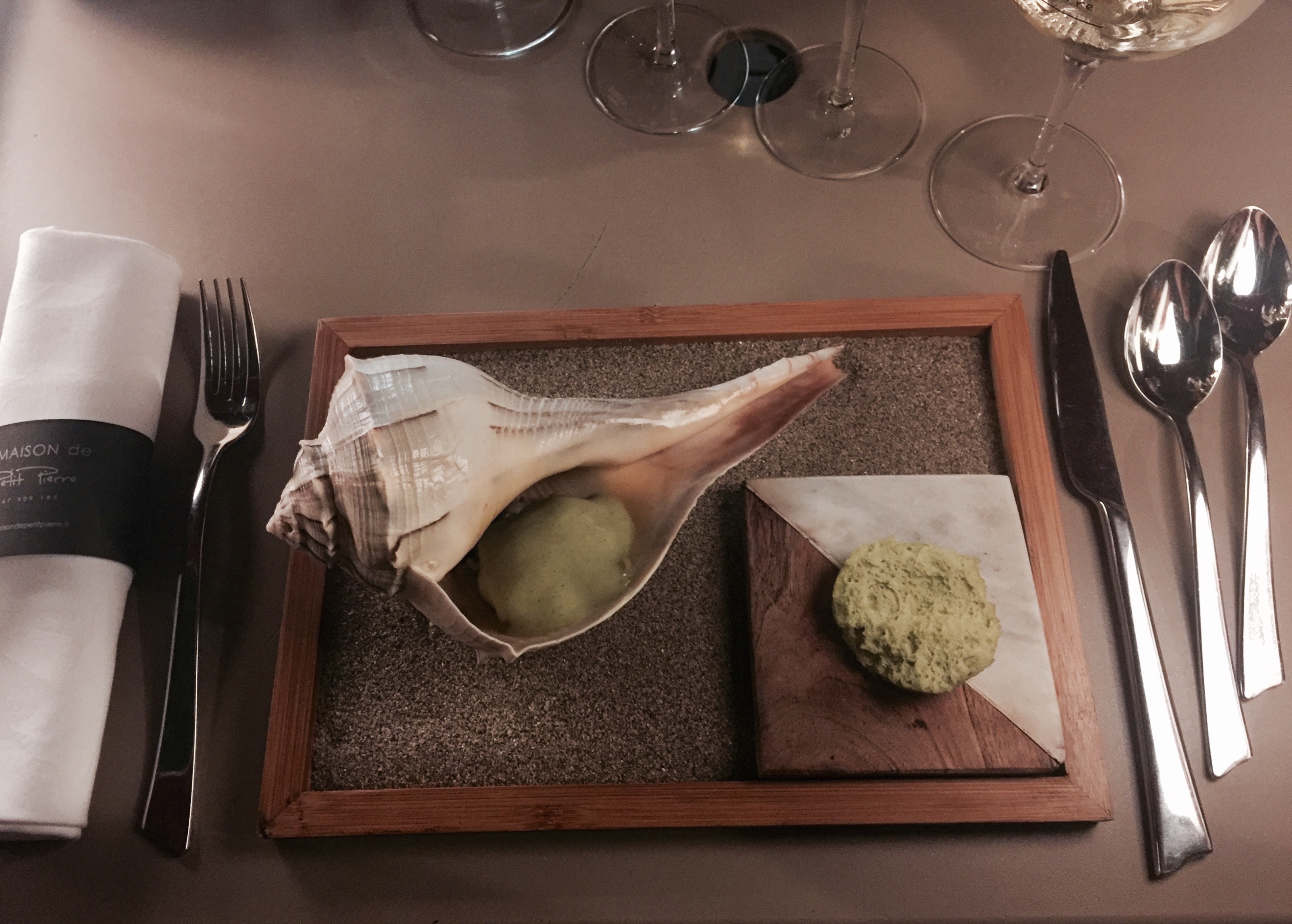 Je vous raconte mon expérience chez Petit Pierre, qu’on ne présente plus … par contre, je vous présente l’envers du décor, son entourage et les coulisses (au moins celles de cette belle soirée). Vous savez ce qu’on dit : derrière un grand homme se cache toujours une femme. La femme derrière Pierre Augé est Fanny et elle ne se cache pas. Ils forment une excellente équipe et ensemble, apportent de la saveur, de la beauté et de la joie. Fanny joue un rôle très important et est aussi la responsable pour la décoration du lieu (ce petit truc qui j’aime tout particulièrement) et encore une fois, pas de fausse note. J’adore !